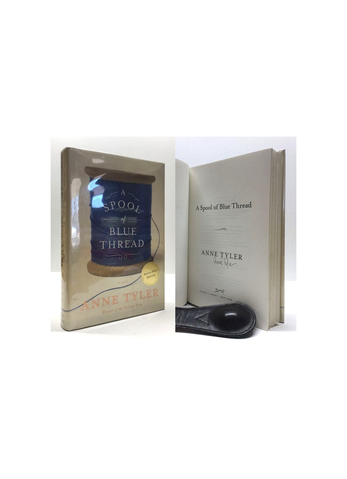 Tyler, Anne. A Spool Of Blue Thread. United States: Alfred Knopf, 1st Edition 1st Printing. 8vo - over 7¾ - 9¾" tall. Hardcover w/ jacket. Book. Signed by Author(s). Fine / Near Fine. ISBN: 9781101874271. Clean text. Gently read. No previous owners markings. Lovely straight spine with binding in nice shape. Blue boards with blue spine and gold spine lettering in fine condition. Dust jacket not price clipped. Just a touch of shelf wear with two small pin head size marks to the front panel. Presents very nicely in new archival mylar cover. $40.00
