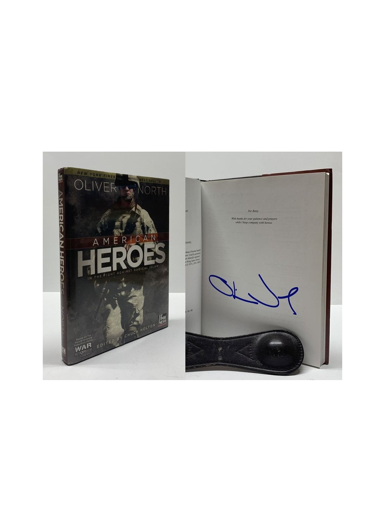 North, Oliver. American Heroes In the Fight Against Radical Islam. United States: B&H Publishing Group, 2008. 1st Edition 1st Printing. 8vo - over 7¾ - 9¾" tall. Hardcover w/ jacket. Book. Signed by Author(s). Fine / Fine. ISBN: 9780805447118. Clean text. Unread. Black boards and spine with silver spine lettering. No previous owner's markings or bookplates. Dust jacket not price clipped. Just a touch of shelf wear. Presents well in new archival mylar jacket. $35.00