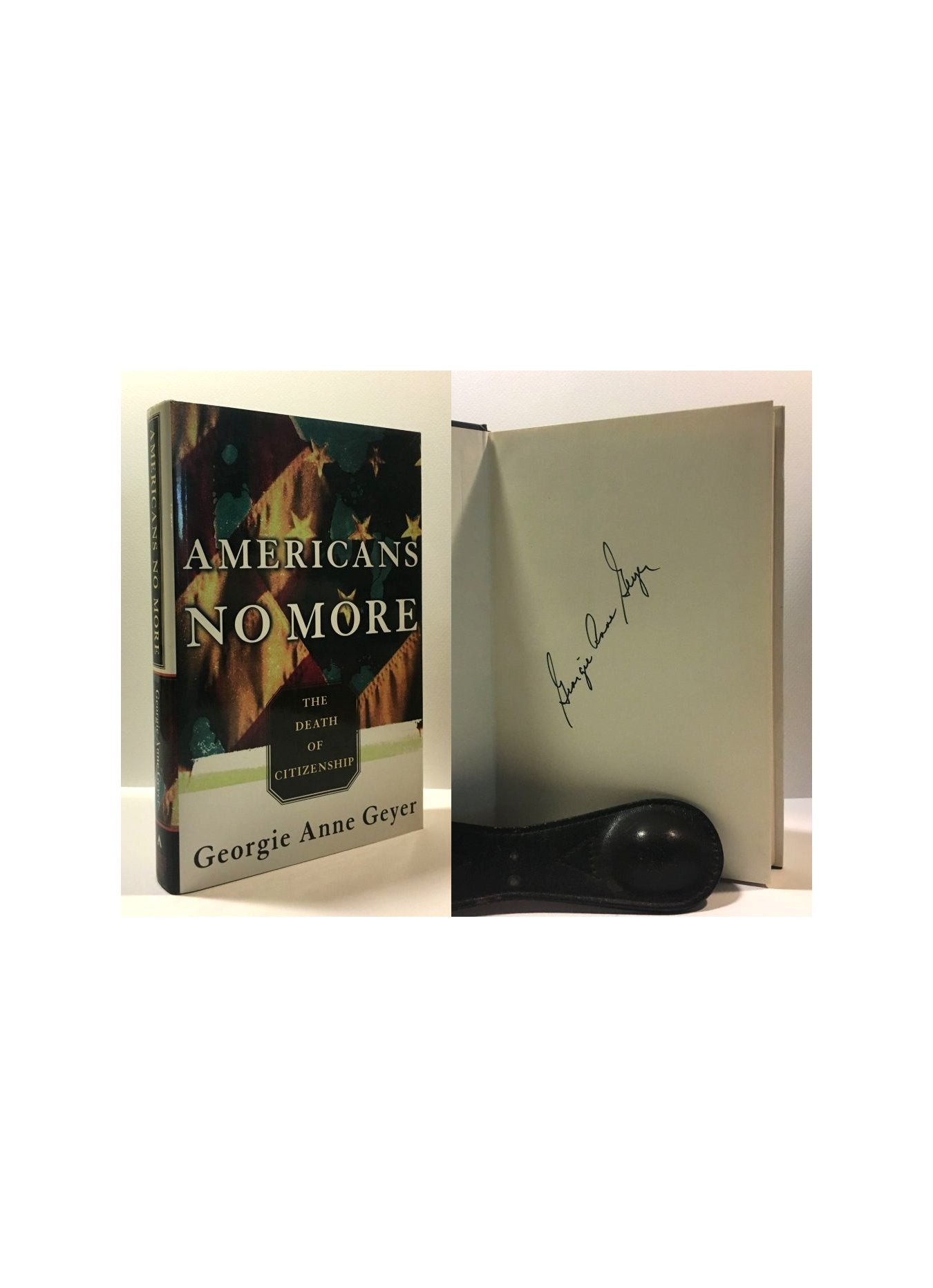 Geyer, Georgie Anne. Americans No More. United States: Atlantic Monthly Press, 2008. 1st Edition 1st Printing. 8vo - over 7¾ - 9¾" tall. Hardcover w/ jacket. Book. Signed by Author(s). Fine / Fine. ISBN: 9780871136503. Text unread and in fine condition. Light shelf wear. Unclipped dust jacket. Under new mylar. $25.00