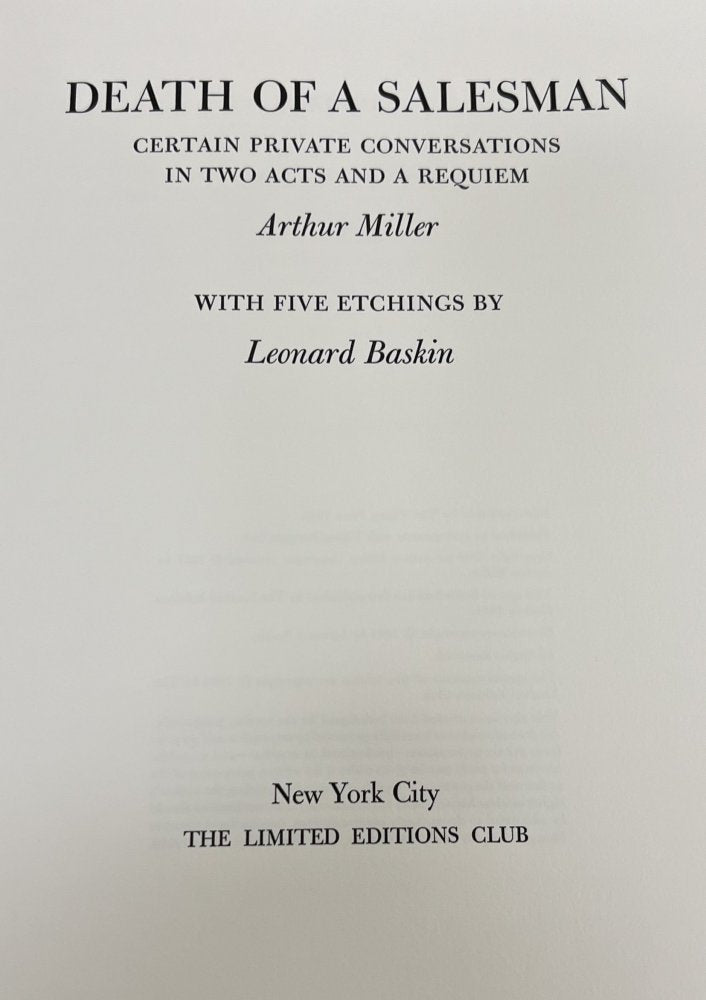 Arthur Miller - Death of a Salesman - Signed & Numbered 1984 - Limited Edition