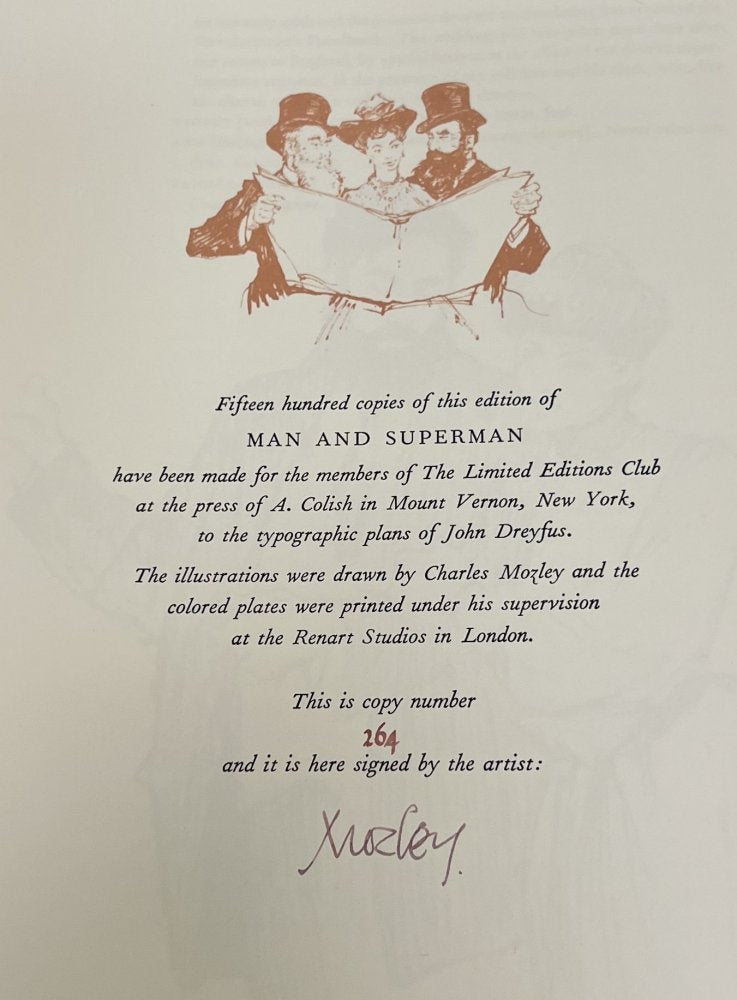 25% Off Summer Sale!! George Bernard Shaw - Man and Superman - Signed & Numbered 1962- Limited Edition Club