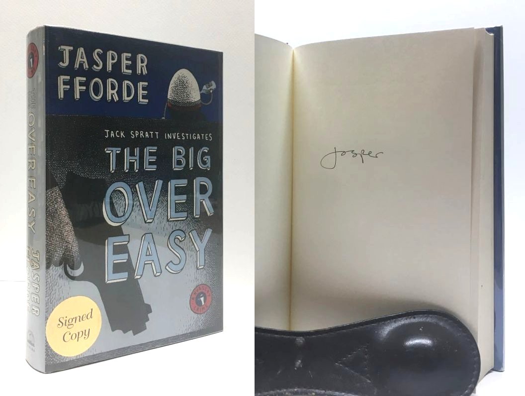 Fforde, Jasper. The Big over Easy: A Nursery Crime. New York, New York, U.S.A.: Viking Press, 2005. 1st Edition 1st Printing. 8vo - over 7¾ - 9¾" tall. Hardcover w/ jacket. Book. Signed by Author(s). Fine / Fine. ISBN: 0670034231. Clean text. Appears unread. No previous owners names or bookplates. Mildest of compresion to the spine heel and crown. Bluye boards, black spine, silver lettering. Dust cover not price clipped. Touch of shelf wear. Very nice copy signed by the author at the 2012 Texas Book Festival. New mylar cover. $45.00