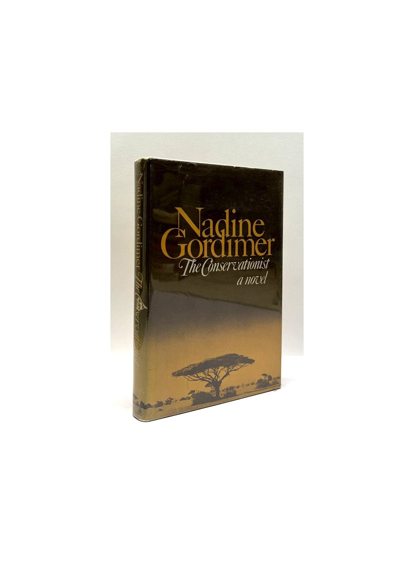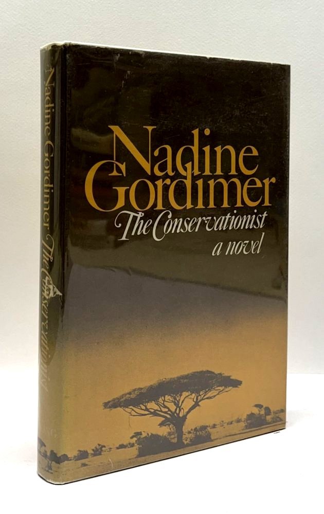 Gordimer, Nadine. The Conservationist. United States: Viking Press, 1975. 1st Edition. 8vo - over 7¾ - 9¾" tall. Hardcover w/ jacket. Book. Signed by Author(s). Fine / Near Fine. ISBN: 067023883X. Signed by the Author. Clean text. Unread. Yellow top stain to the top edge of the text. Small bookplate to the front paste down. Fawn boards, brown spine, green/gold stamped lettering. Dustcover not price clipped. Light shelf wear, touch of creasing to the top and base of the spine. New mylar cover. Smart copy. Booker Prize winning novel 1975. Uncommon signed.