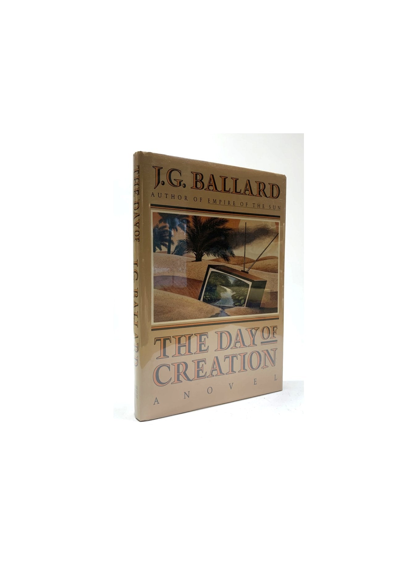 Ballard, J. G.. The Day Of Creation. United States: Farrar Strauss Giroux, 1988. 1st Edition 1st Printing. 8vo - over 7¾ - 9¾" tall. Hardcover w/ jacket. Book. Signed by Author(s). Fine / Fine. Clean text. Unread. Beige boards & brown spine, gold spine lettering. Dust cover not price clipped. Mildest of shelf wear. Presents nicely under new archival mylar cover. Beautiful copy. $30.00