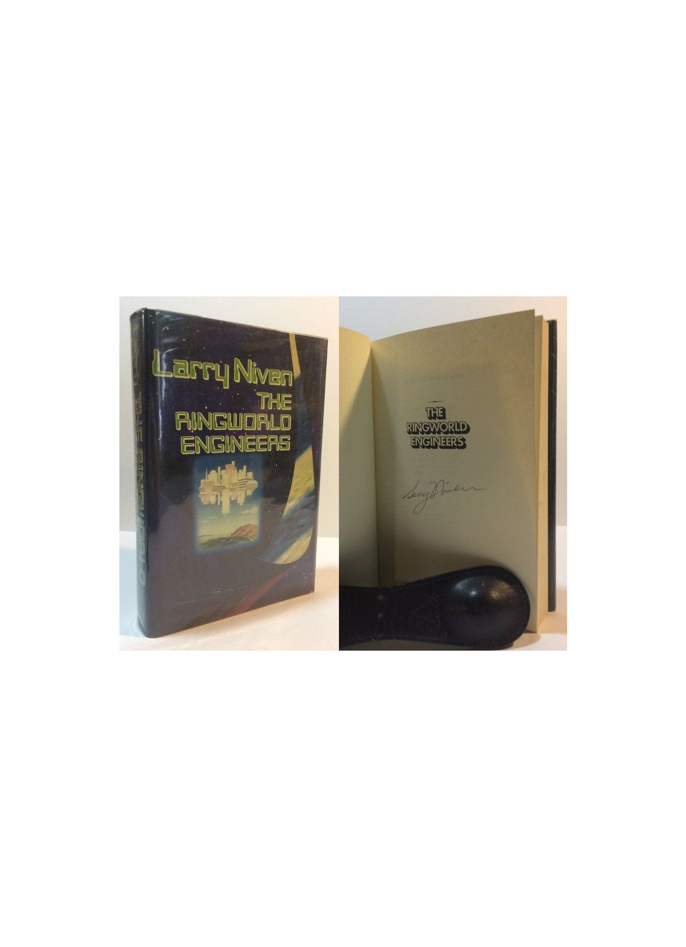 Niven, Larry. The Ringworld Engineers. United States: Holt, Rinehart, and Winston, 1980. 1st Edition 4th Impression. 12mo - over 6¾ - 7¾" tall. Hardcover w/ jacket. Book. Signed by Author(s). Near Fine / Near Fine. ISBN: 0030213762. Clean text. Unread. Touch of toning to the text edges else fine. From the personal collection of ex-NASA engineer David Travis and carries his bookplate to the title page. Black boards & spine, metallic blue spine lettering. Dust cover not price clipped. Touch of shelf wear with light wear to the crown of the spine. New mylar cover. Handsome copy of an earlier Niven work. $40.00