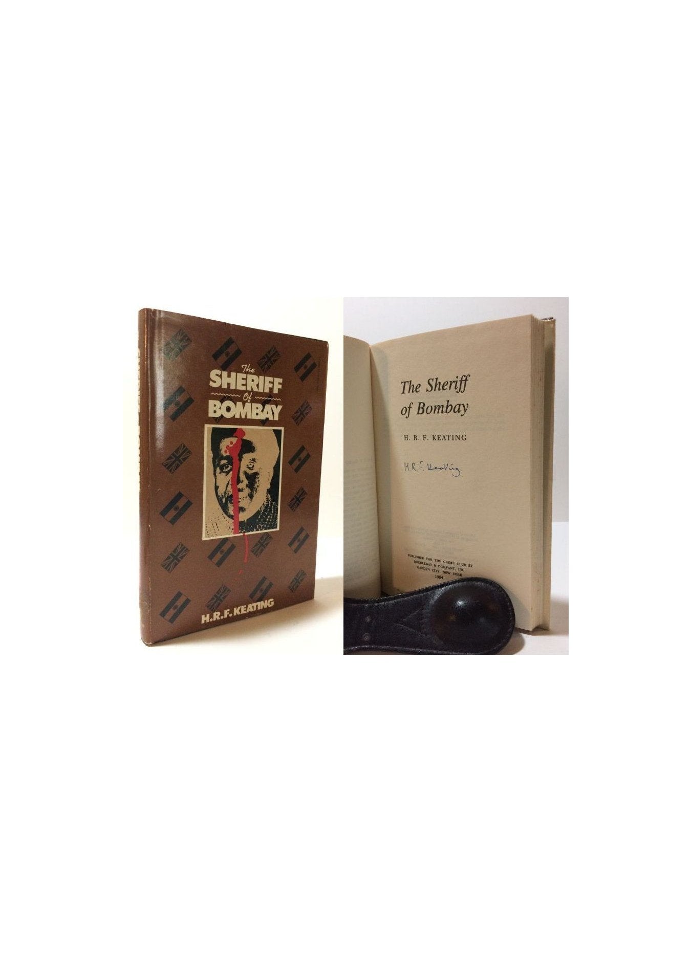 Keating, H. R. F.. The Sheriff Of Bombay. United States: Doubleday Crime Club, 1984. 1st Edition 1st Printing. 12mo - over 6¾ - 7¾" tall. Hardcover w/ jacket. Book. Signed by Author(s). Fine / Near Fine. ISBN: 0385194617. Unread with the text in fine condition. Brown boards with orange lettering. Dust cover not price clipped. Some light shelf wear with a touch of bumping to the extremities. New mylar cover. Increasing rare and uncommon signed. $45.00