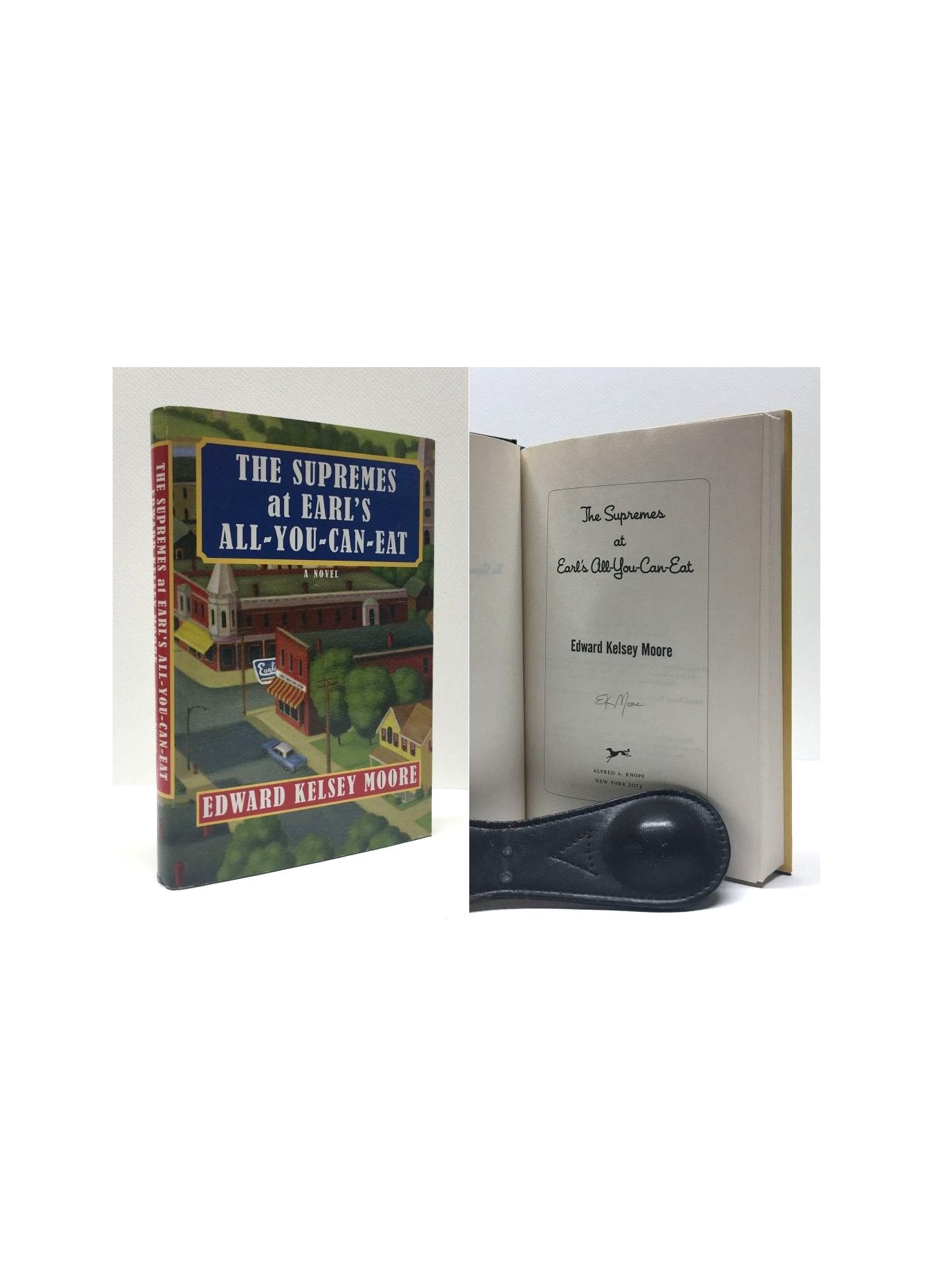Moore, Edward Kelsey. The Supremes at Earl's All-You-Can-Eat. United States: Knopf, 2013. 1st Edition 1st BCE Issue. 12mo - over 6¾ - 7¾" tall. Hardcover w/ jacket. Book. Signed by Author(s). Near Fine / Near Fine. ISBN: 9780307959928. Clean text. Appears unread. Light toning to the text block edges. Dust cover not price clipped. Touch of shelf wear. New archival mylar cover. Nice copy. New mylar cover available on request. $20.00