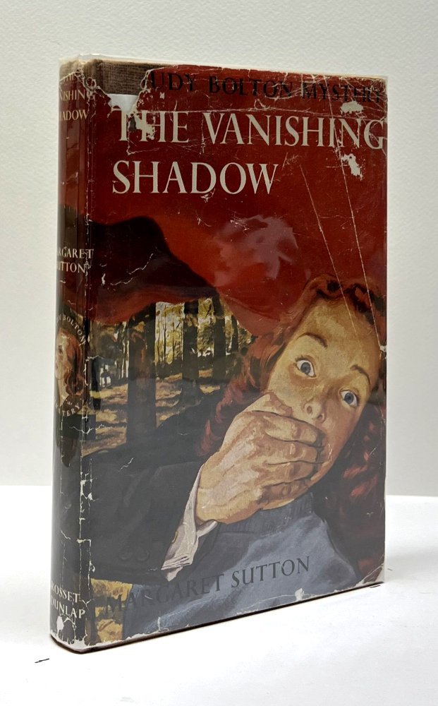 Sutton, Margaret. The Vanishing Shadow. United States: Grosset & Dunlap, 1932. 1st Edition. 12mo - over 6¾ - 7¾" tall. Hardcover w/ jacket. Book. Very Good / Good. Clean text. Gently read. Light wear to the board edges. Brown cloth boards with black spine lettering. Vanishing Shadow last title listed as required for the first printing. Dust cover not clipped. Some shelf and edge wear with one chip to the spine crown and another to the top edge of the rear. New archival mylar cover. $10.00