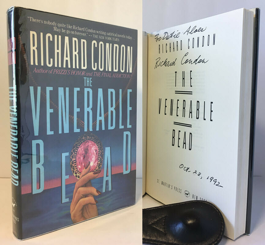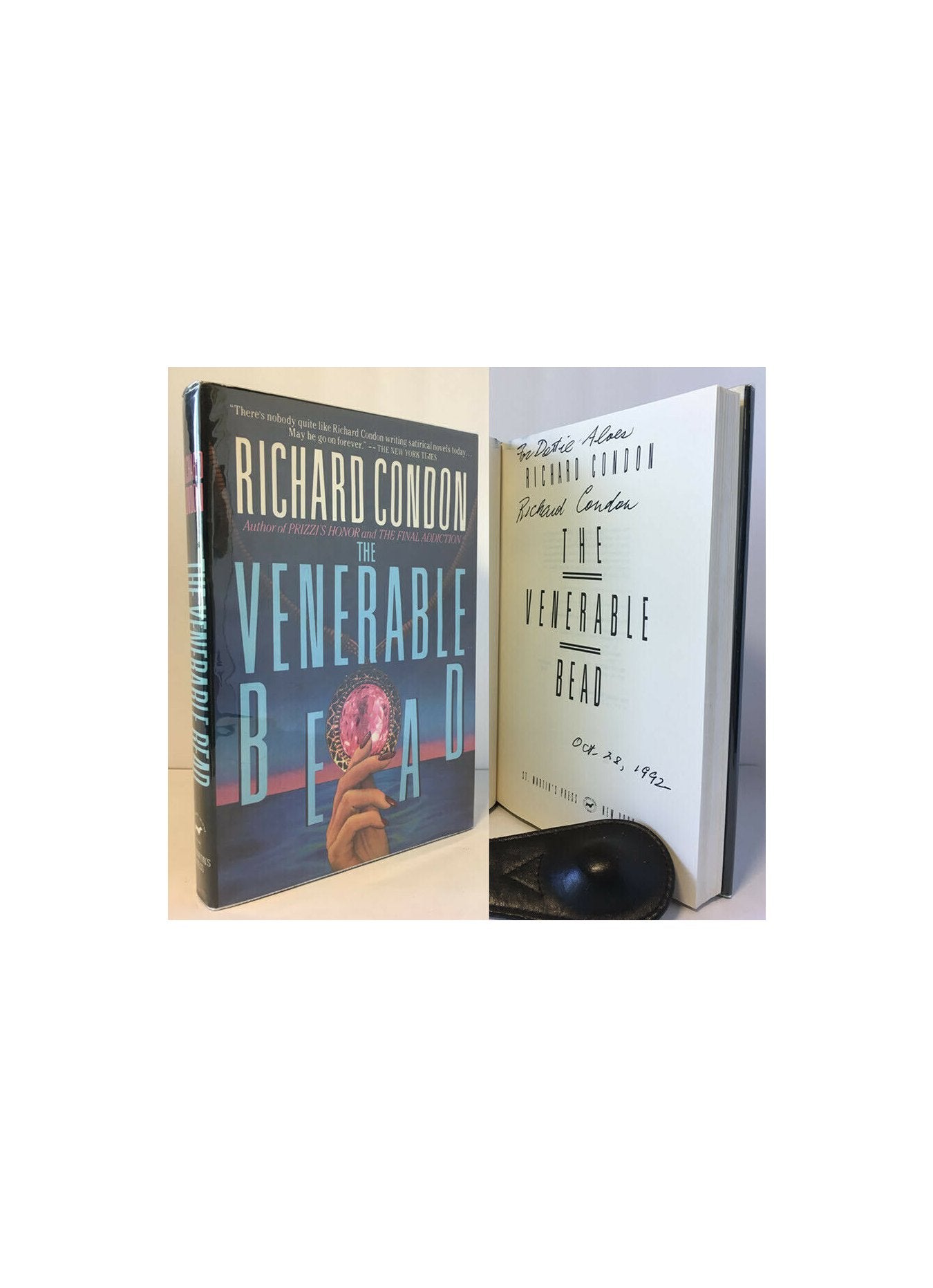 Condon, Richard. The Venerable Bead. United States: St. Martins Press, 1992. First Edition , 1st Printing. 8vo - over 7¾ - 9¾" tall. Hardcover w/ jacket. Book. Inscribed by Author(s). Near Fine / Fine. ISBN: 0312083319. Clean text. Unread. Light stain to the top edge of the first five pages of the text. Blue boards & black spine, silver spine lettering. Dust cover not price clipped. Light shelf wear. New mylar cover. $35.00