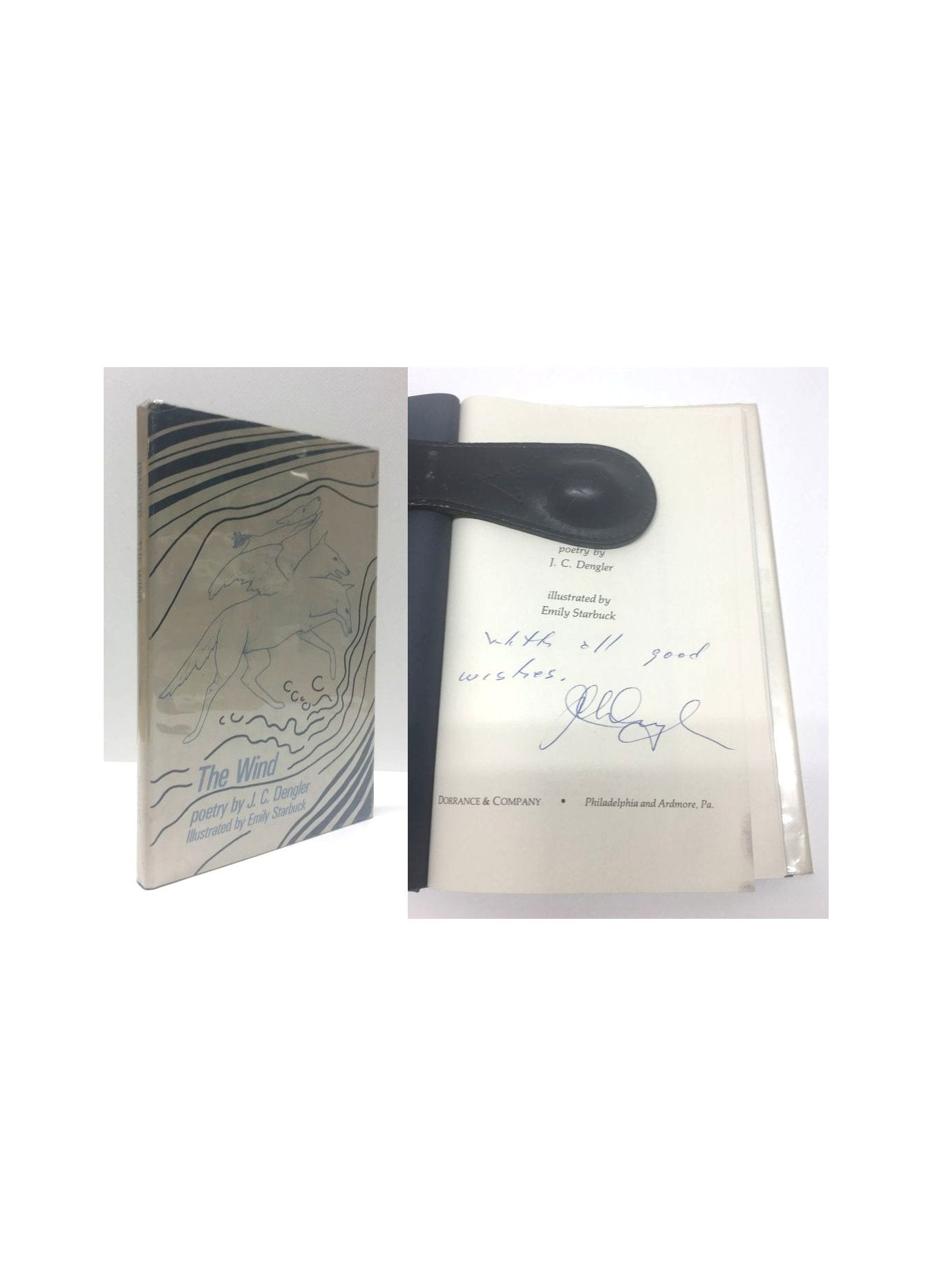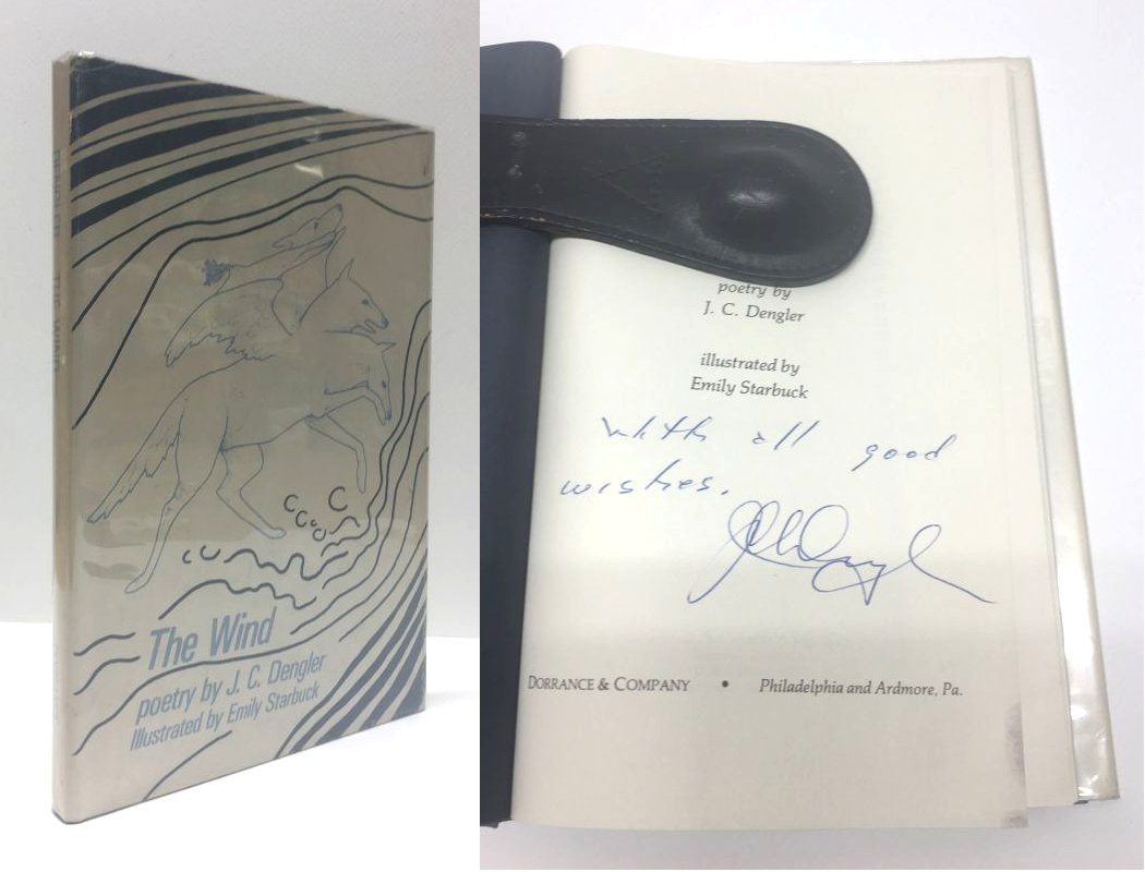 Dengler, J. C. The Wind. United States: Dorance & Co, 1978. 1st Edition 1st Printing. 8vo - over 7¾ - 9¾" tall. Hardcover w/ jacket. Book. Inscribed by Author(s). Near Fine / Very Good. ISBN: 0805925821. Inscribed by Author. Text clean. Blue boards showing some wear to the extremities with silver spine lettering. Inscribed to the title page. Dust cover not price clipped. Mild shelf and edge wear with some sunning to the rear panel. New mylar cover. $20.00