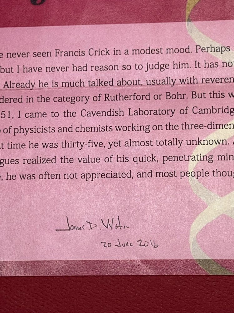 Autographed Typescript - James D. Watson - The Double Helix - Nobel Prize winner -