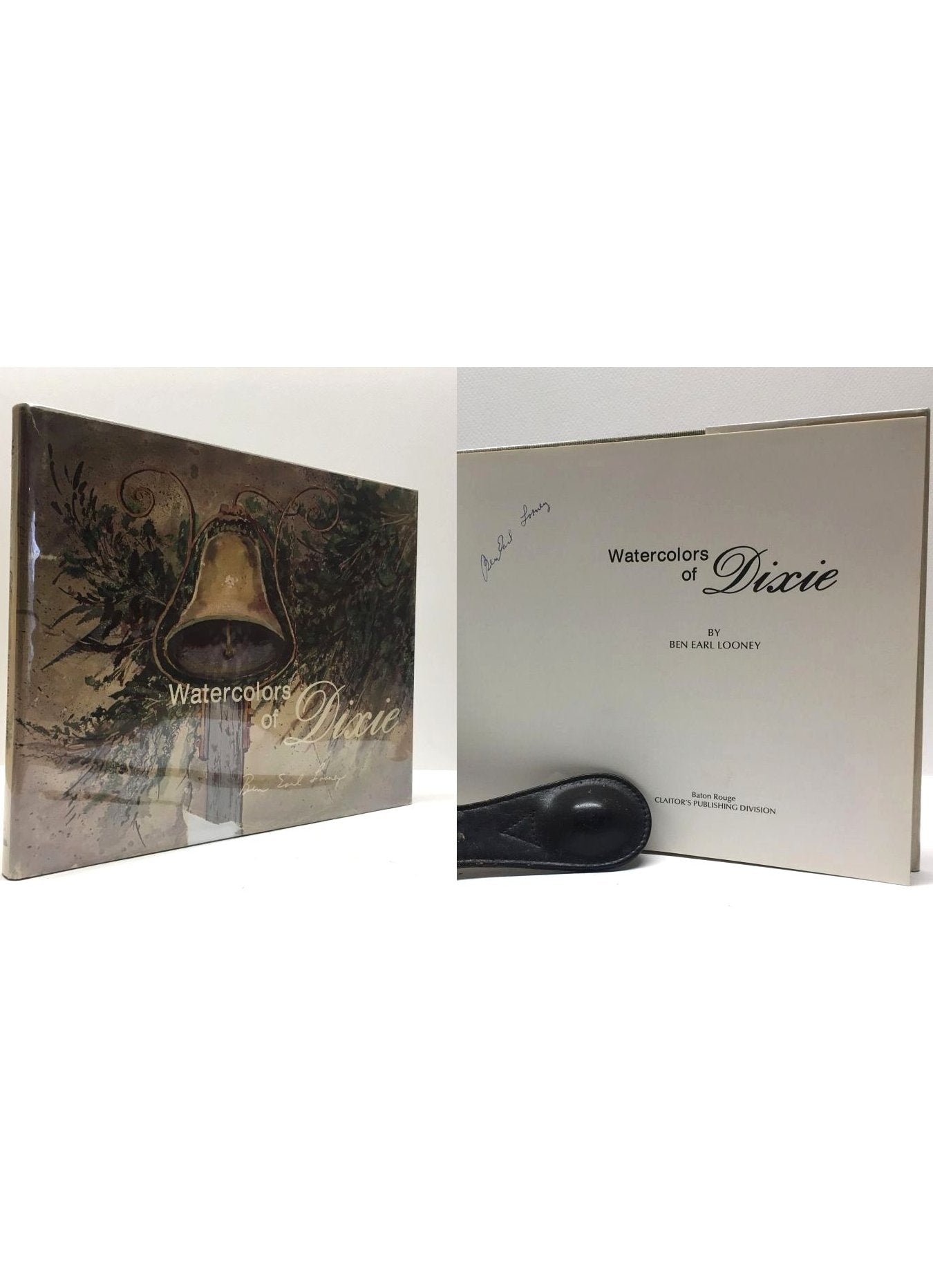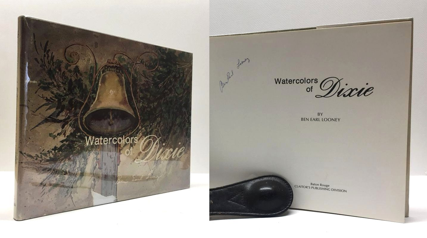 Looney, Ben Earl. Watercolors Of Dixie. Baton Rouge, United States: Claitors Publishing, 1974. 1st Edition. 8vo - over 7¾ - 9¾" tall. Hardcover w/ jacket. Book. Signed by Author(s). Fine / Very Good. Signed by the Author. Clean text. Unread. Light toning to the top edge of the boards. Grey cloth boards & spine, red spine lettering. Dust cover price clipped. Light shelf and edge wear. Chip to the bottom edge of the front panel. New mylar cover. Uncommon signed from the noted Louisiana Artist. $100.00