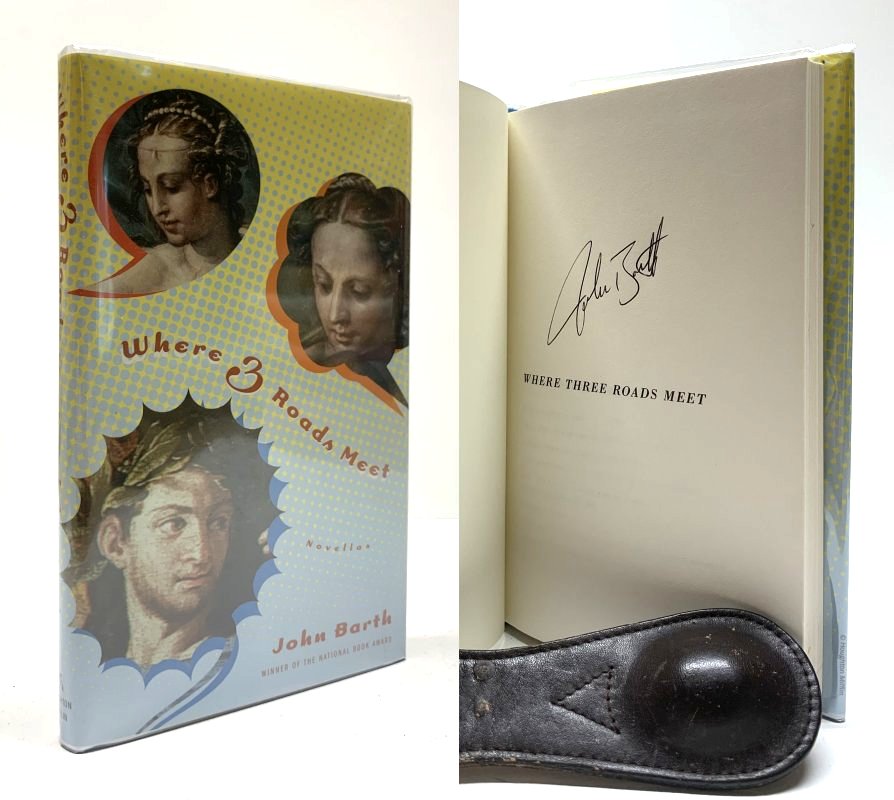 Barth, John. Where Three Roads Meet : Novellas. Orlando, FL, U.S.A.: Houghton Mifflin & Co., 2005. 1st Edition. 12mo - over 6¾ - 7¾" tall. Hardcover w/ jacket. Book. Signed by Author(s). Fine / Fine. ISBN: 0618610162. Clean text. Unread. Blue boards / blue spine, gold lettering. Dustcover not price clipped. New mylar cover. Smart copy. $45.00