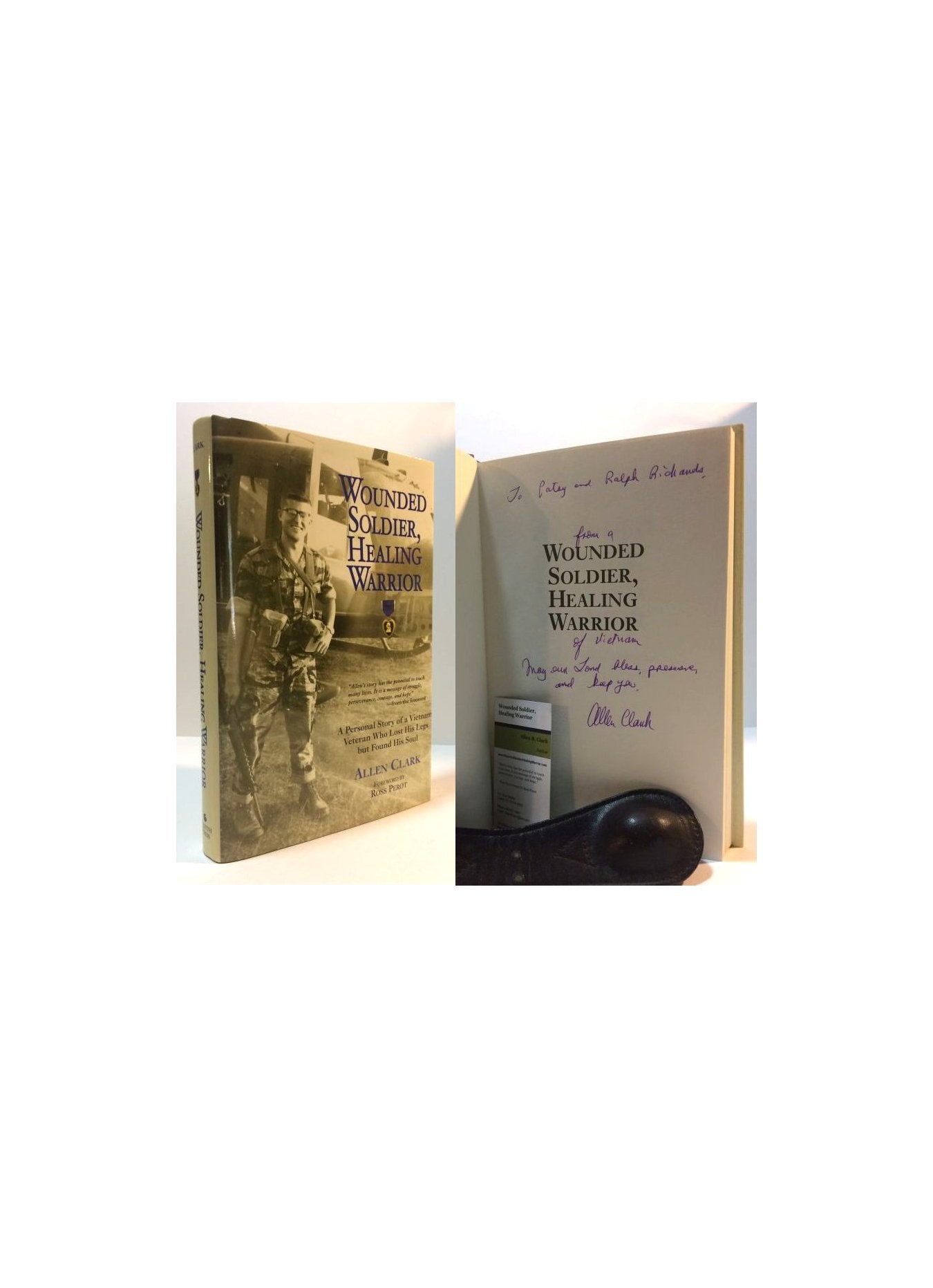 Clark, Allen. Wounded Soldier, Healing Warrior. United States: Zenith Press, 2007. 1st Edition 1st Printing. 8vo - over 7¾" - 9¾" tall. Hardcover w/ jacket. Book. Inscribed by Author(s). Fine / Fine. ISBN: 9780760331132. Clean text with straight spine and tight binding. Appears unread. No previous owner's markings. Purple boards and spine with gold spine lettering. Dust jacket not price clipped. Touch of shelf wear. Presents nicely in new archival mylar jacket. $10.00