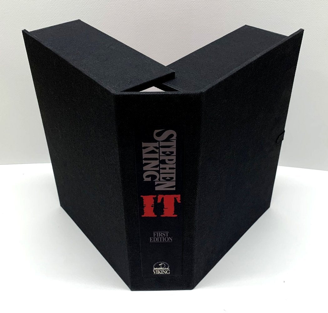 Stephen King - IT CUSTOM AFTERMARKET CLAMSHELL CASE Each slipcase is individually hand made from the highest quality materials using time honored traditional techniques, and it is important to note that there are no acidic glues, resins, or epoxy mixes in their construction. Any paper and cloth products used are also acid free. Please note that this slipcase has been designed to fit the 1st Edition / 1st Printing of the title and other copies are not guaranteed to fit. CONTACT ME FOR CUSTOM CASES MADE TO ORDER.