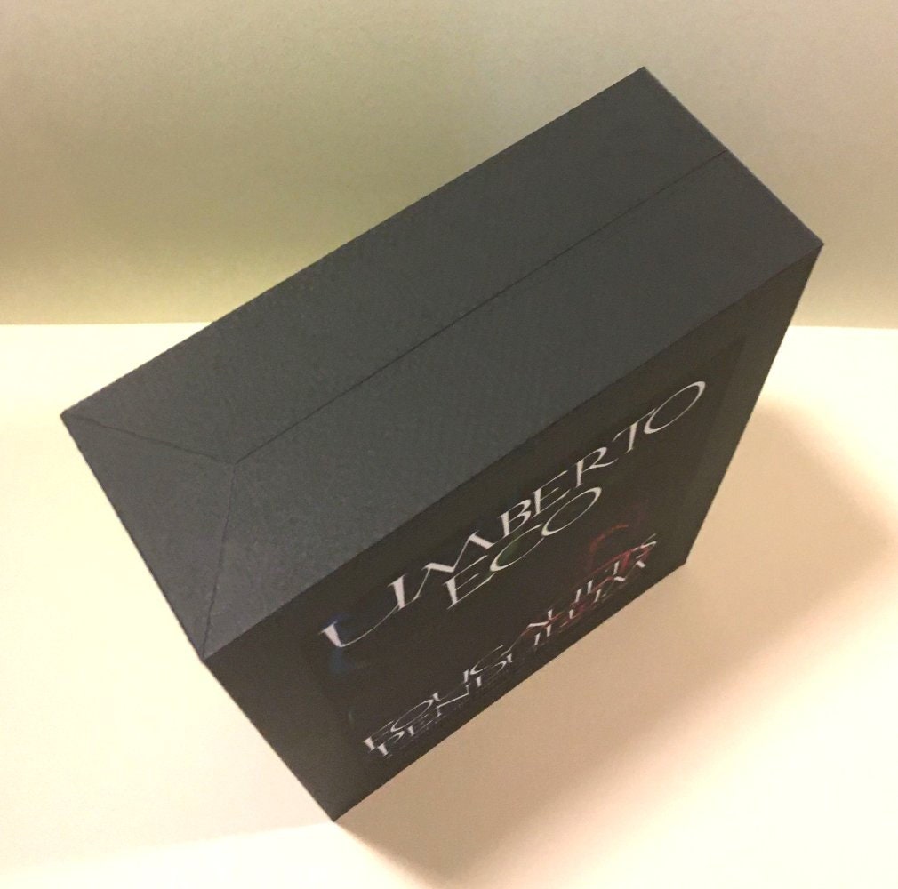 Umberto Eco Foucault's Pendulum CUSTOM AFTERMARKET SLIPCASE Each slipcase is individually hand made from the highest quality materials using time honored traditional techniques, and it is important to note that there are no acidic glues, resins, or epoxy mixes in their construction. Any paper and cloth products used are also acid free. Please note that this slipcase has been designed to fit the 1st Edition / 1st Printing of the title and other copies are not guaranteed to fit. CONTACT ME FOR CUSTOM CASES MADE TO ORDER.