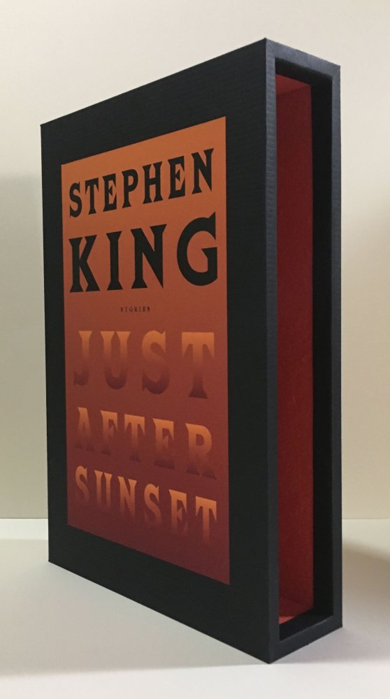 Stephen King JUST AFTER SUNSET (Black Title) CUSTOM AFTERMARKET SLIPCASE Each slipcase is individually hand made from the highest quality materials using time honored traditional techniques, and it is important to note that there are no acidic glues, resins, or epoxy mixes in their construction. Any paper and cloth products used are also acid free. Please note that this slipcase has been designed to fit the 1st Edition / 1st Printing of the title and other copies are not guaranteed to fit. CONTACT ME FOR CUSTOM CASES MADE TO ORDER.