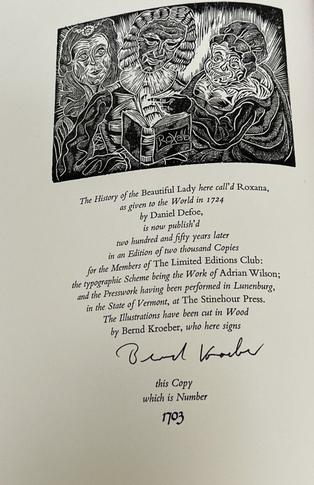 Daniel Defoe - Roxanna - Signed & Numbered 1976 - Limited Edition