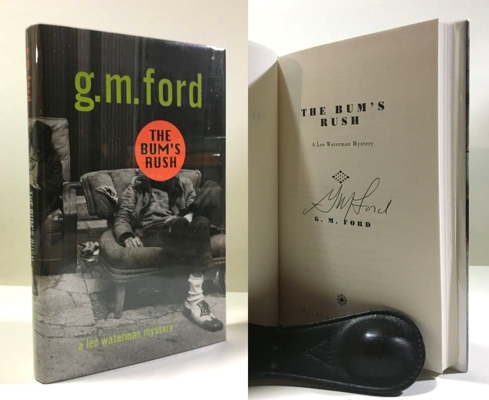 Ford, G. M.. The Bum's Rush (Leo Waterman Mysteries). United States: Walker & Co, 1997. 1st Edition 1st Printing. 8vo - over 7¾ - 9¾" tall. Hardcover w/ jacket. Book. Signed by Author(s). Fine / Fine. ISBN: 0802732992. Clean text. Unread. No previous owners' names or other markings. Brown boards with brwon spine and green spine lettering. Duist jacket not price clipped. Presents well under new archival mylar cover. Handsome copy. $25.00