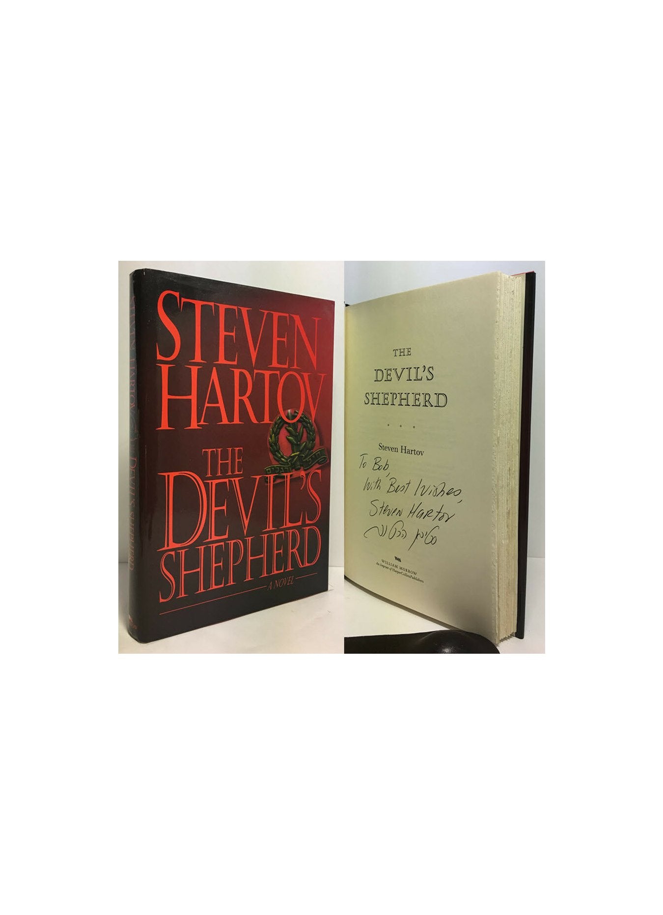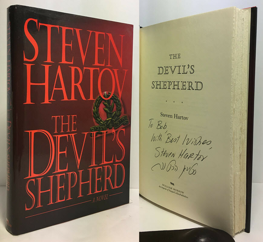 Hartov, Steven. The Devil's Sheperd. United States: William Morrow, 2000. 1st Edition 1st Printing. 8vo - over 7¾ - 9¾" tall. Hardcover w/ jacket. Book. Inscribed by Author(s). Fine / Fine. ISBN: 0688141218. Text is unread. Red quarter bound boards with black spine and red spine lettering. Inscribed on the title page. Dust cover not price clipped. Light shelf wear. New mylar cover. $25.00
