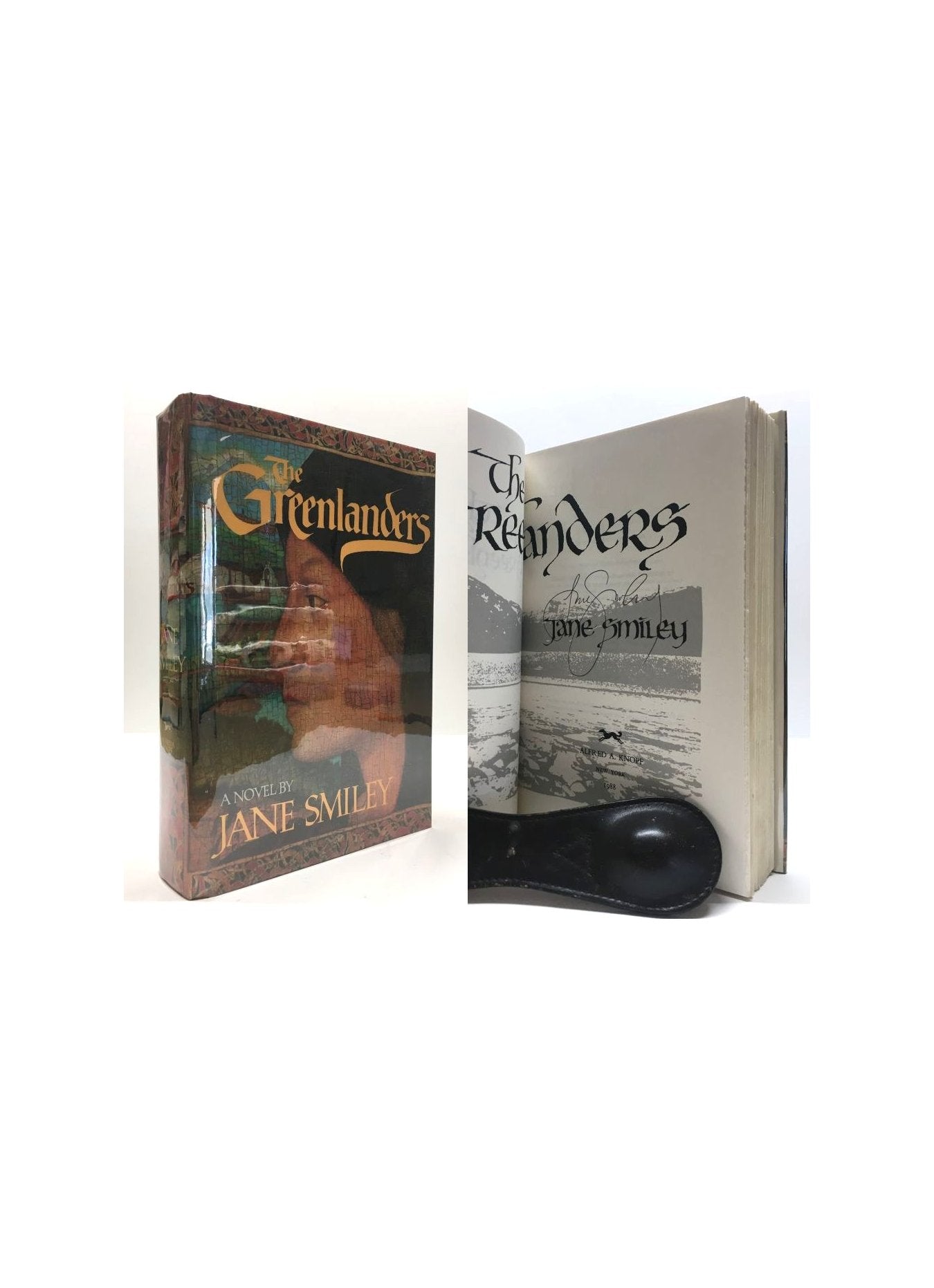 Smiley, Jane. The Greenlanders. United States: Alfred A. Knopf, 1988. First Edition , 1st Printing. 8vo - over 7¾ - 9¾" tall. Hardcover w/ jacket. Book. Signed by Author(s). Fine / Fine. Signed by the Author. Clean text. Gently read. Green boards & beige spine, gold spine lettering. Light compression to the spine heel. Dust cover not price clipped. New mylar cover. Presents well under new mylar cover. Nice copy from the Pulitzer Prize winning author. $45.00