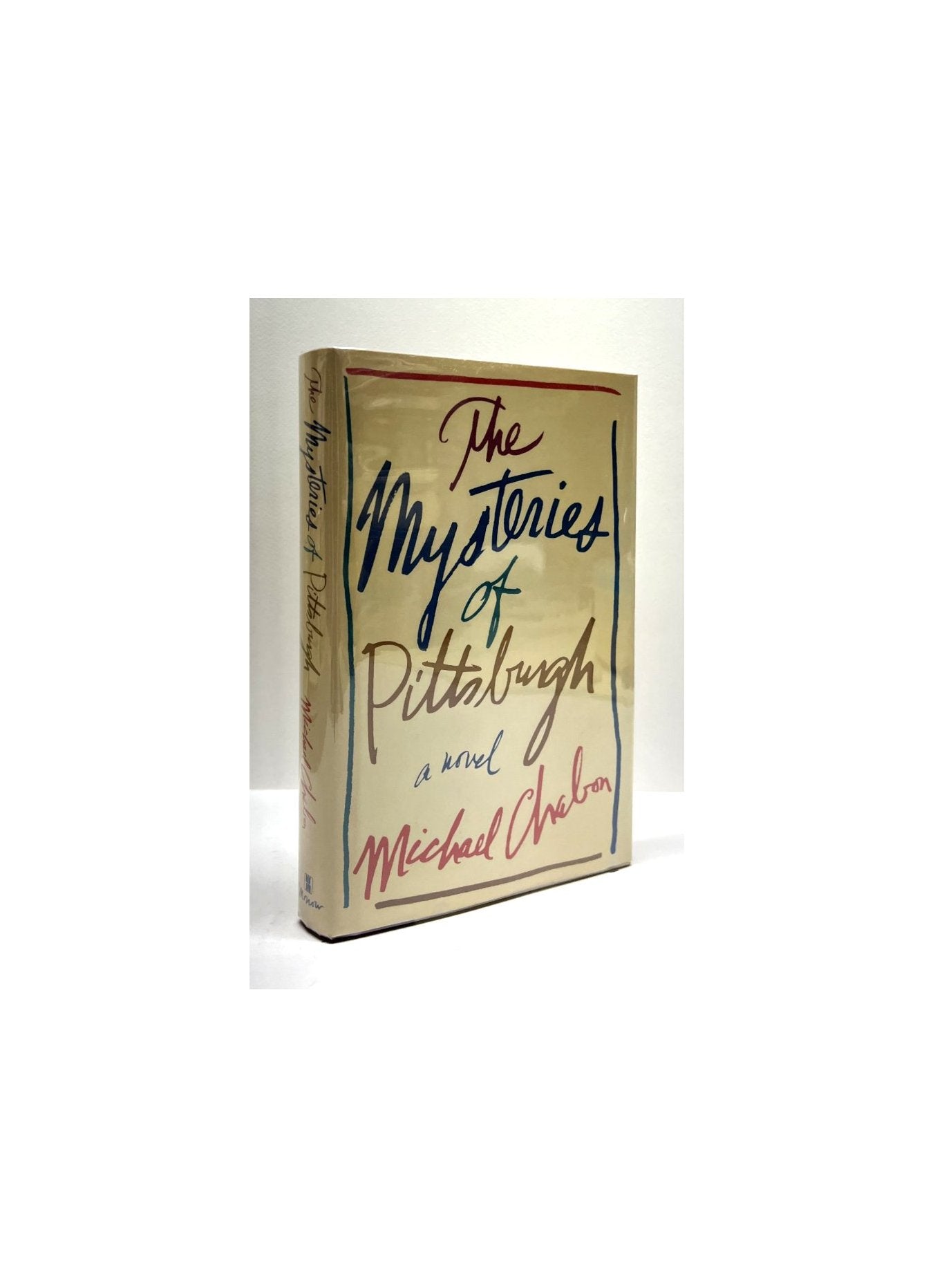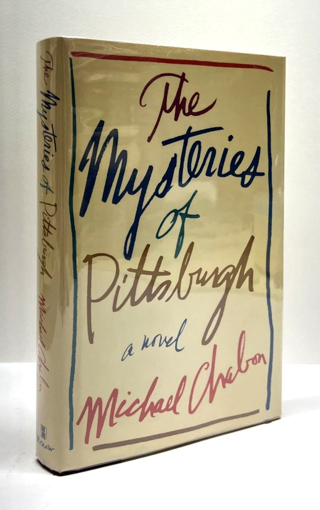 Chabon, Michael. The Mysteries of Pittsburgh. Scranton, Pennsylvania, U.S.A.: William Morrow & Co, 1988. 1st Edition. 8vo - over 7¾ - 9¾" tall. Hardcover w/ jacket. Book. Fine / Near Fine. ISBN: 0688076327.Clean text. Unread. Light toning to the top of the text with small remainder slash to the bottom edge else fine. White boards, maroon spine, silver spine lettering. Dust cover not price clipped. Some light shelf wear with a light crease to the spine and mild toning to the edges. New mylar cover. Increasingly uncommon copy of Chabon's first book. $100.00